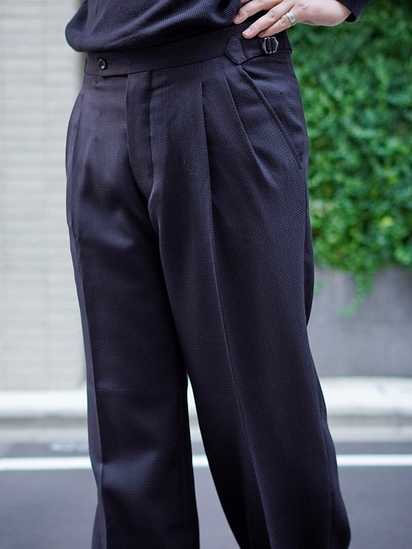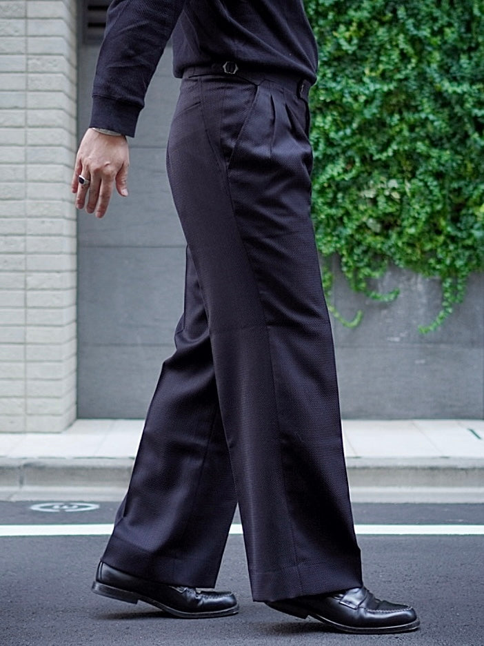 These two-pleat wide straight pants have a beautiful, straight silhouette with no tapering whatsoever.