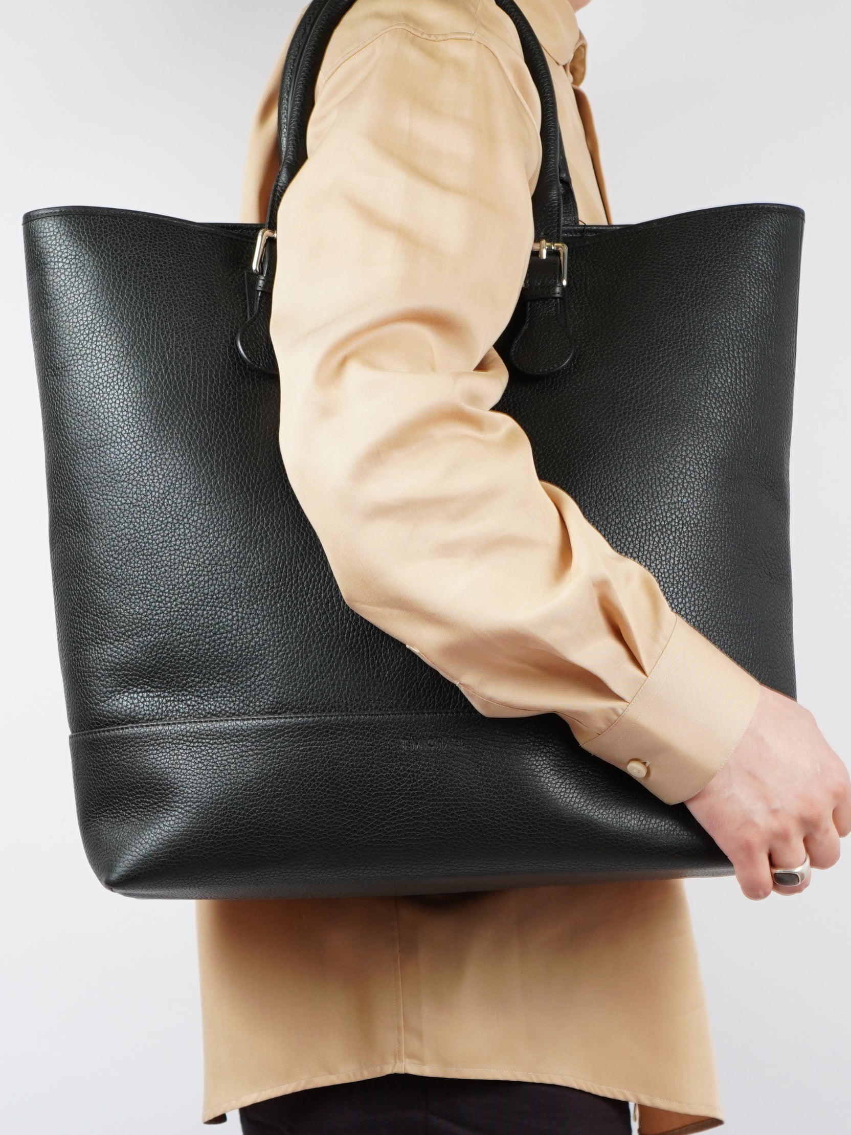 This leather tote bag's simple design makes it highly versatile and suitable for a variety of occasions.