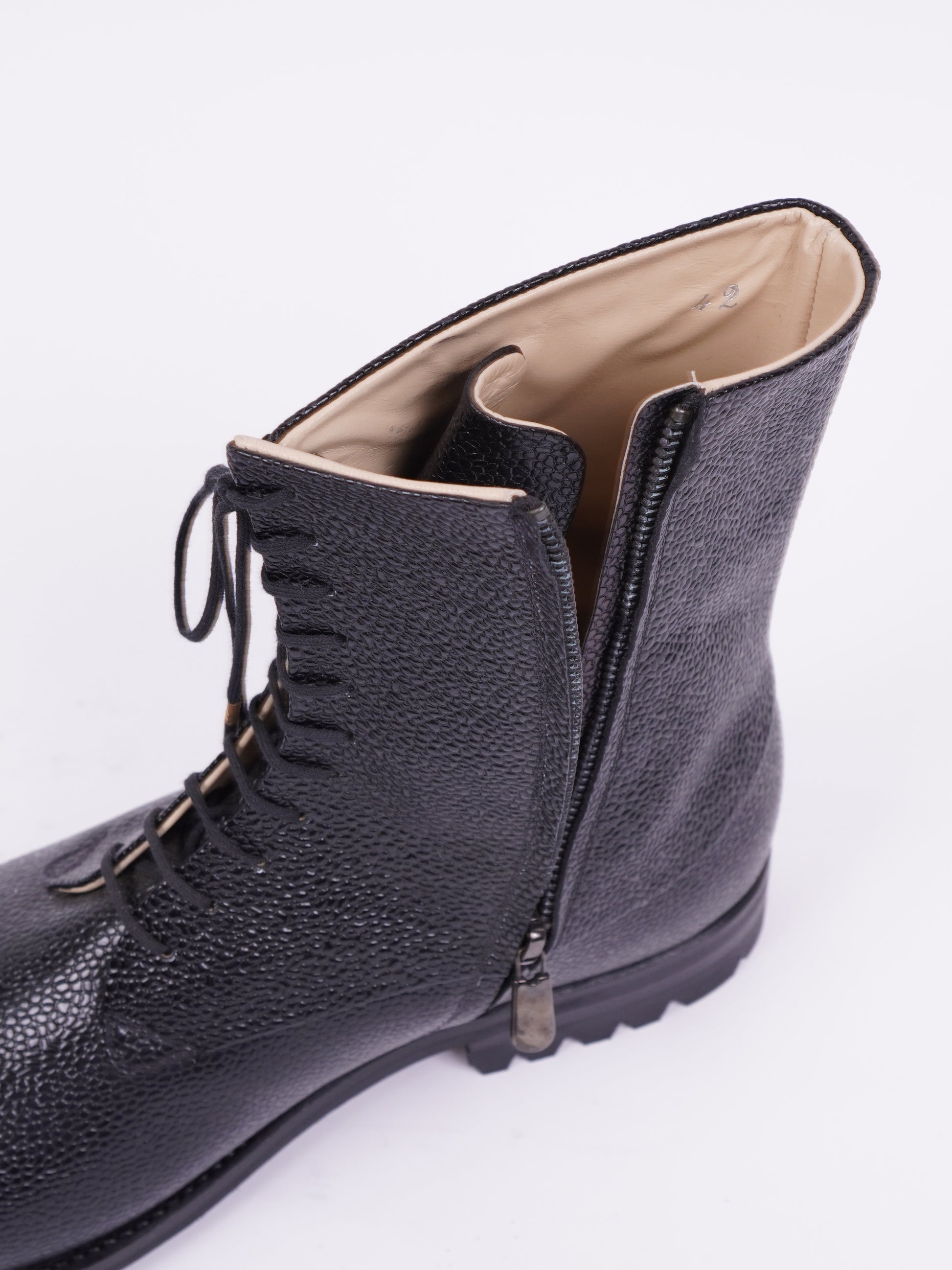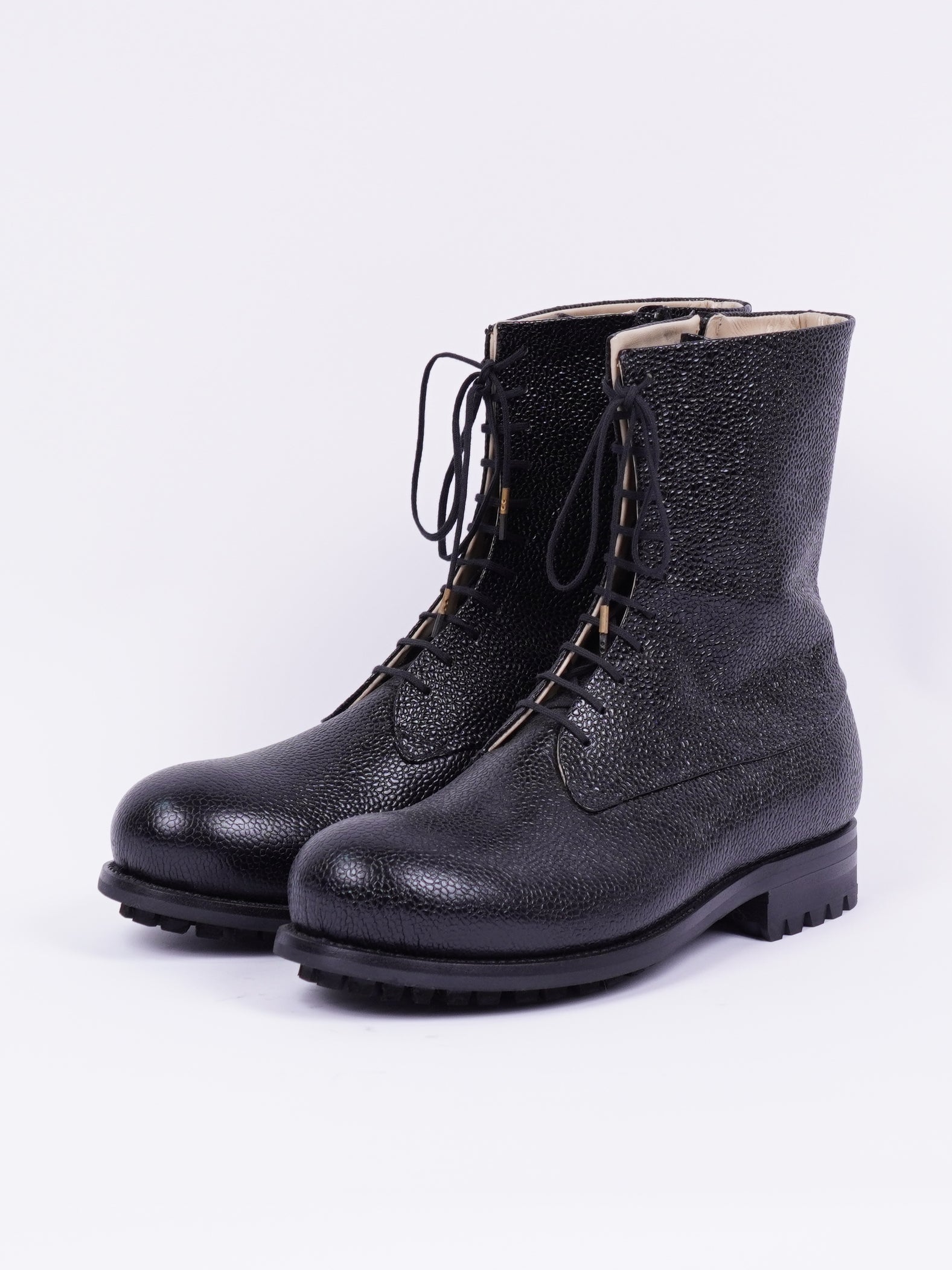 These lace-up boots are made from an original last and have a presence that matches T-MICHAEL's clothes.