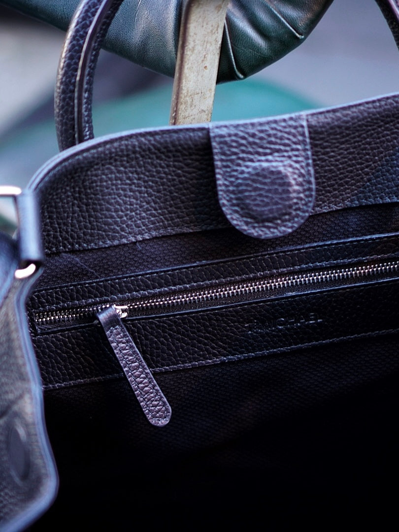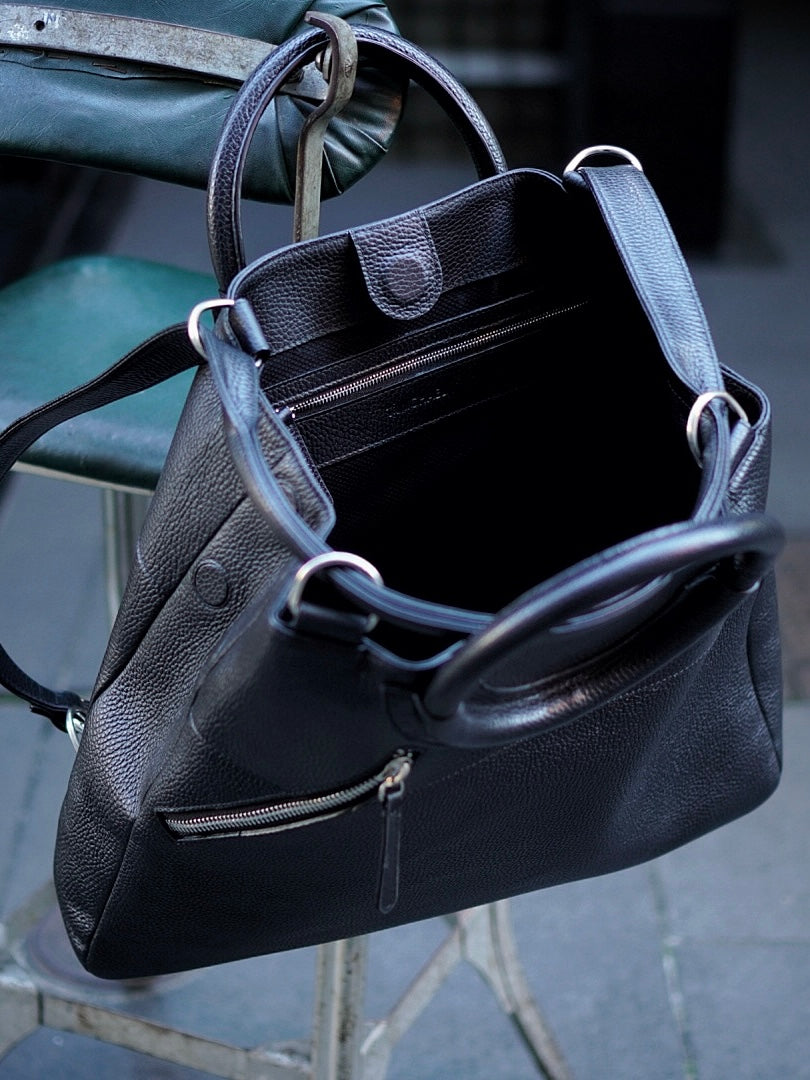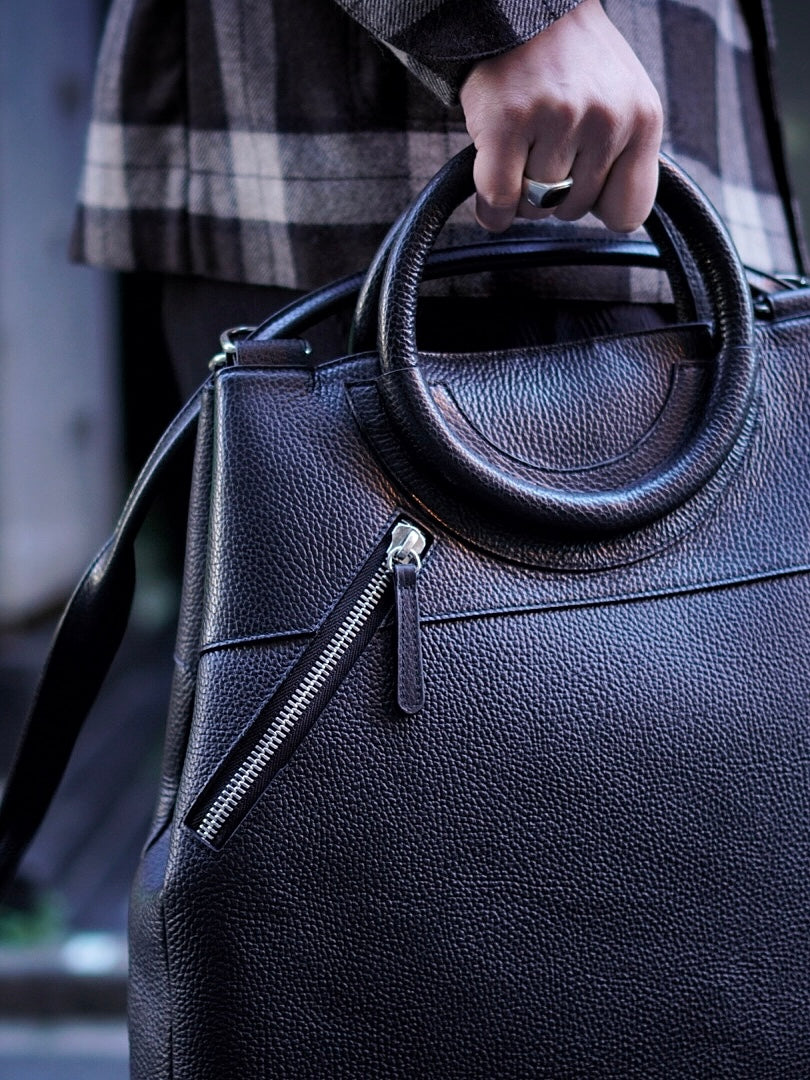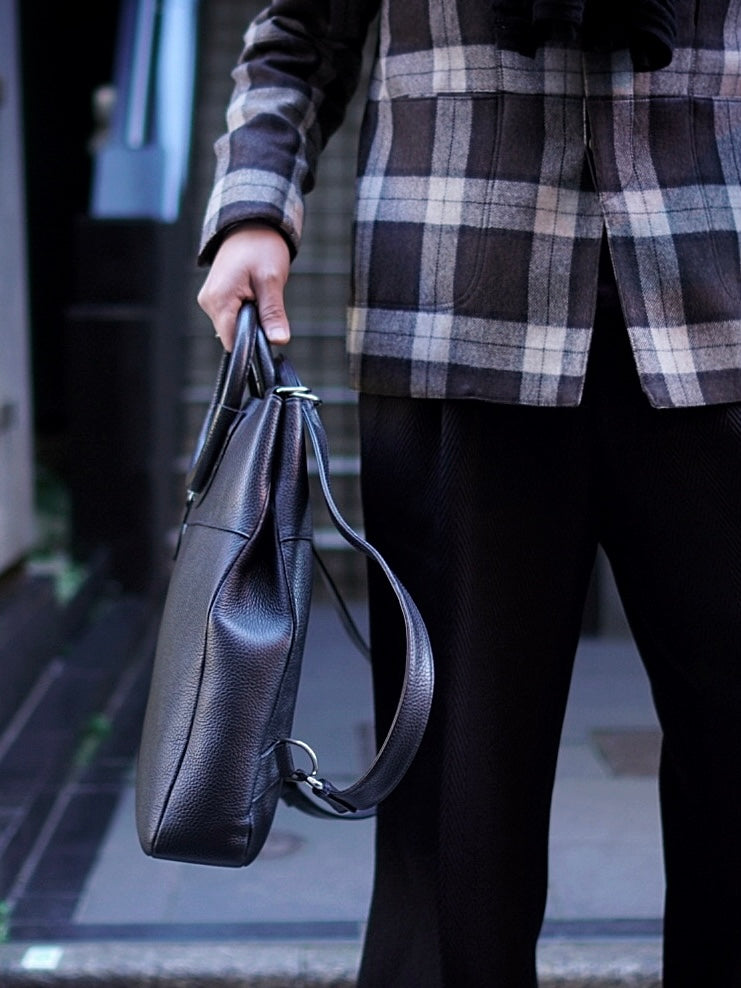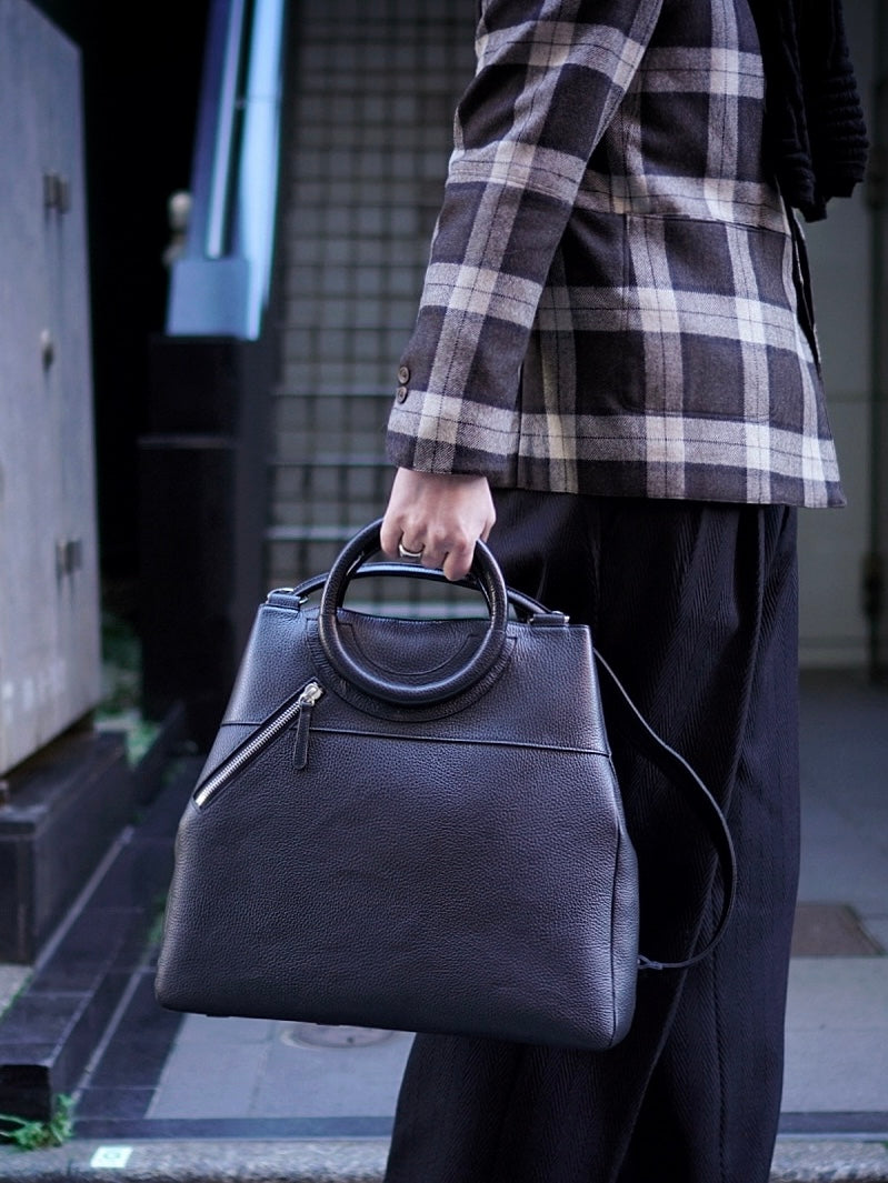 In addition to being able to hold it in any way you like, its size allows it to fit A4 size documents either vertically or horizontally, and its gusset is not too wide, making it highly convenient to use.