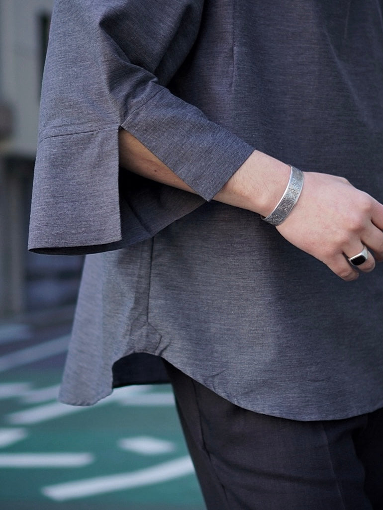 This tunic looks great on its own, featuring detailed design details such as darts and cut designs on the sleeves and hem.