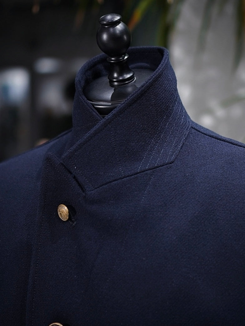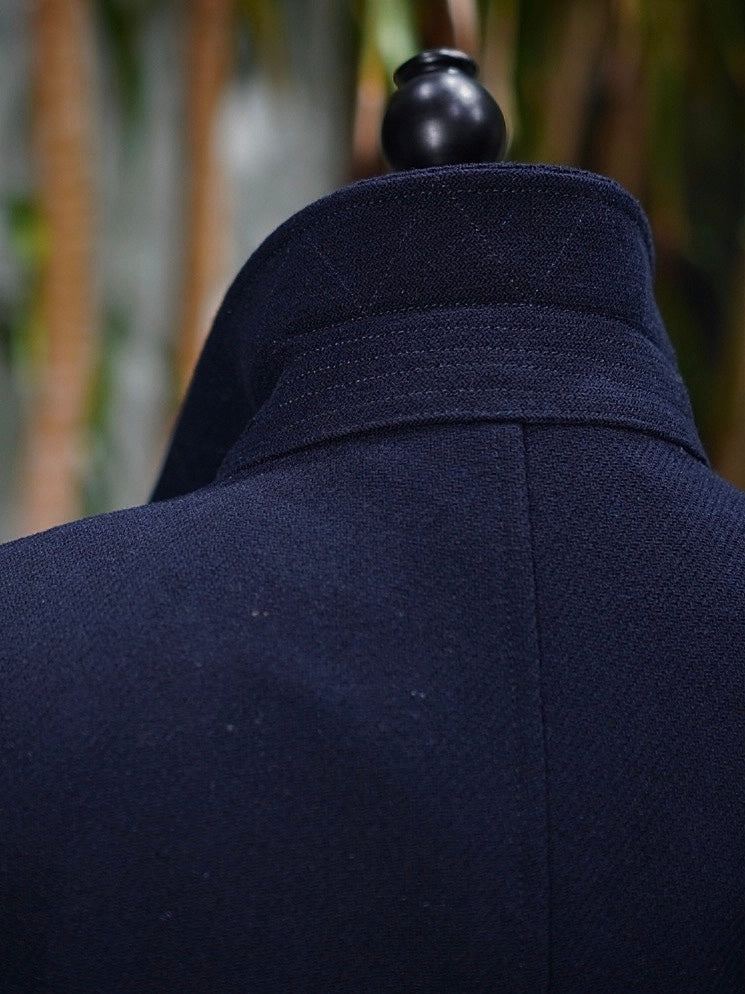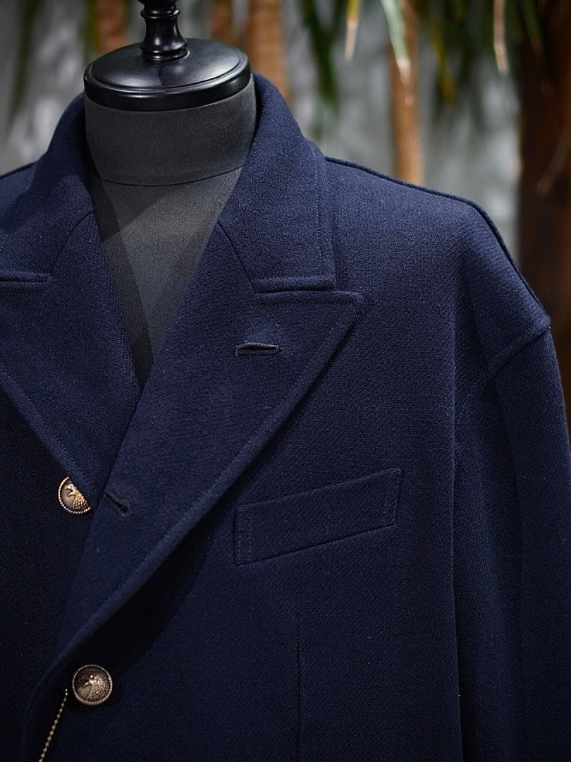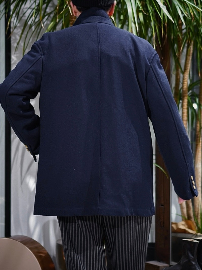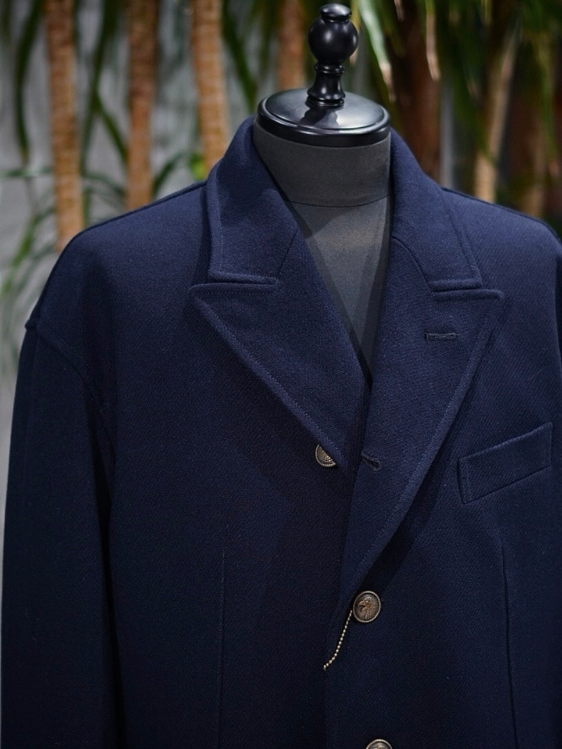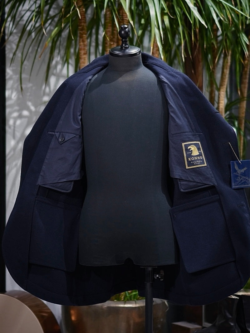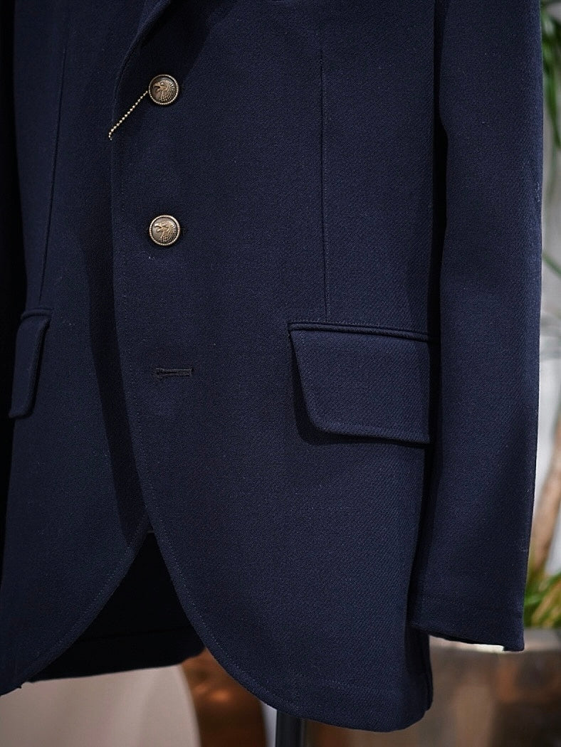 4B段返り、ピークドラペル、ノーベント、フラップポケット。