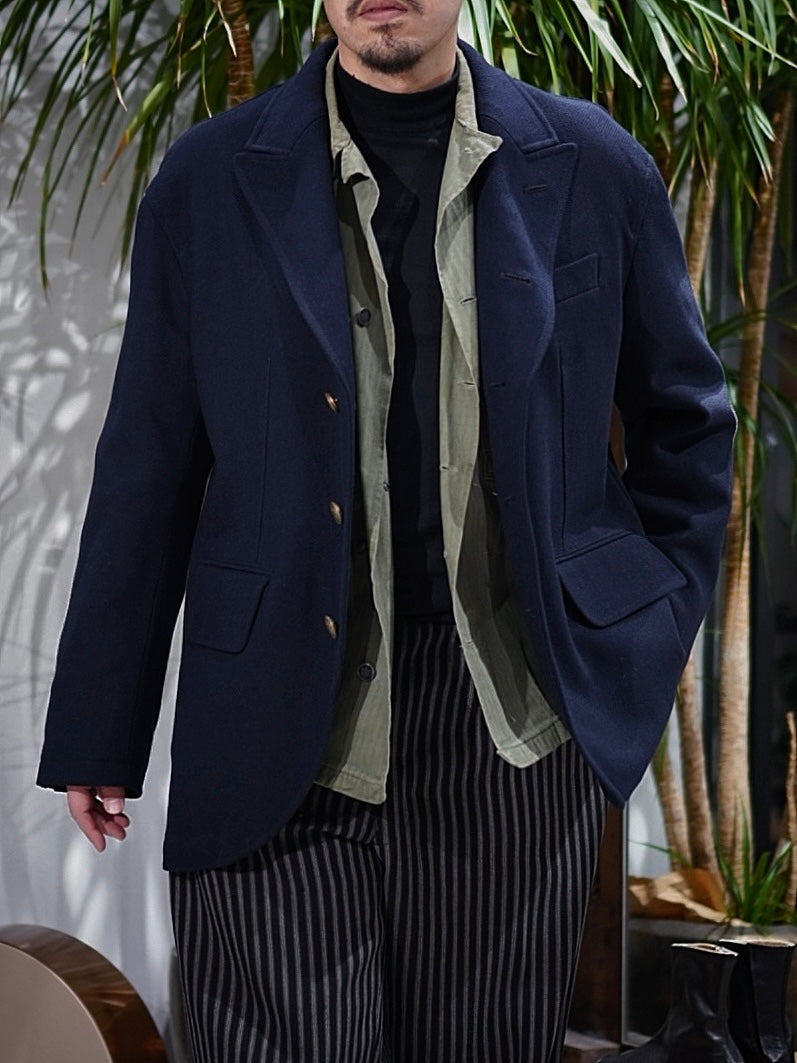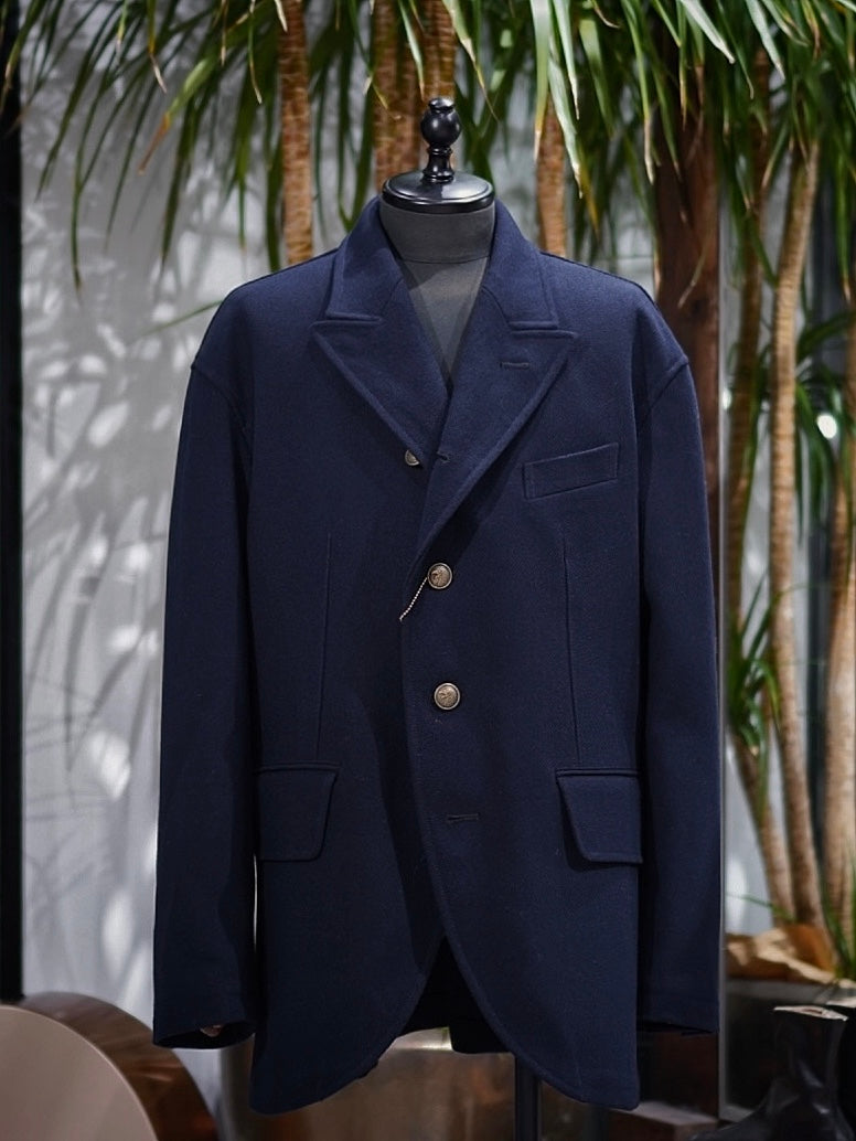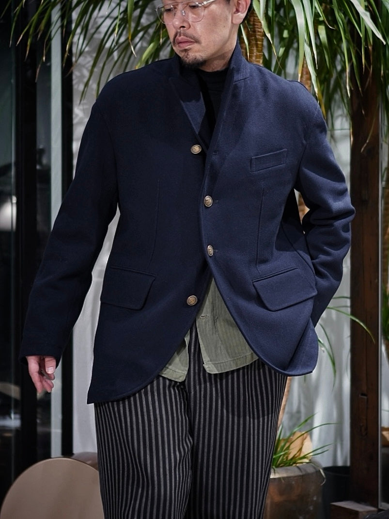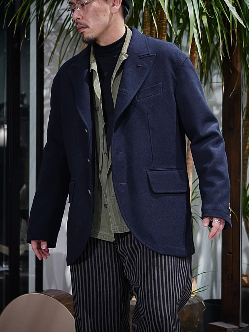 ヴィンテージ感のあるフロントシェイプにアシンメトリーなSBジャケット”参式”。