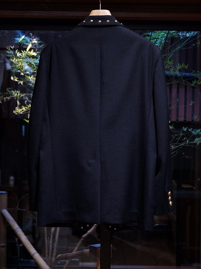 パターンは壱式と同様に、日本人の骨格に合った浅めのシェープとやや長めのレングスをベースに、ディテールで個性を表現。肩には薄くパッドを入れ、要所に毛芯を採用することで、生地の特性を活かしながら重さを調整し、程よい立体感を持たせています。