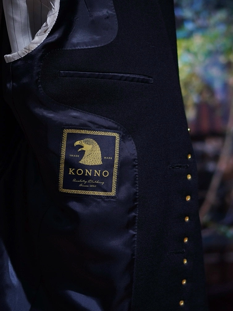 経年変化を楽しめる真鍮製のオリジナルボタンや、袖を捲った時に覗く裏地など、細部にもKONNOらしい美意識が宿る。