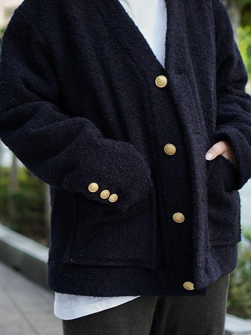 カーディガンのような軽やかさと、ジャケットの持つきちんと感を両立させたコーディガンの正統型"七式"。
