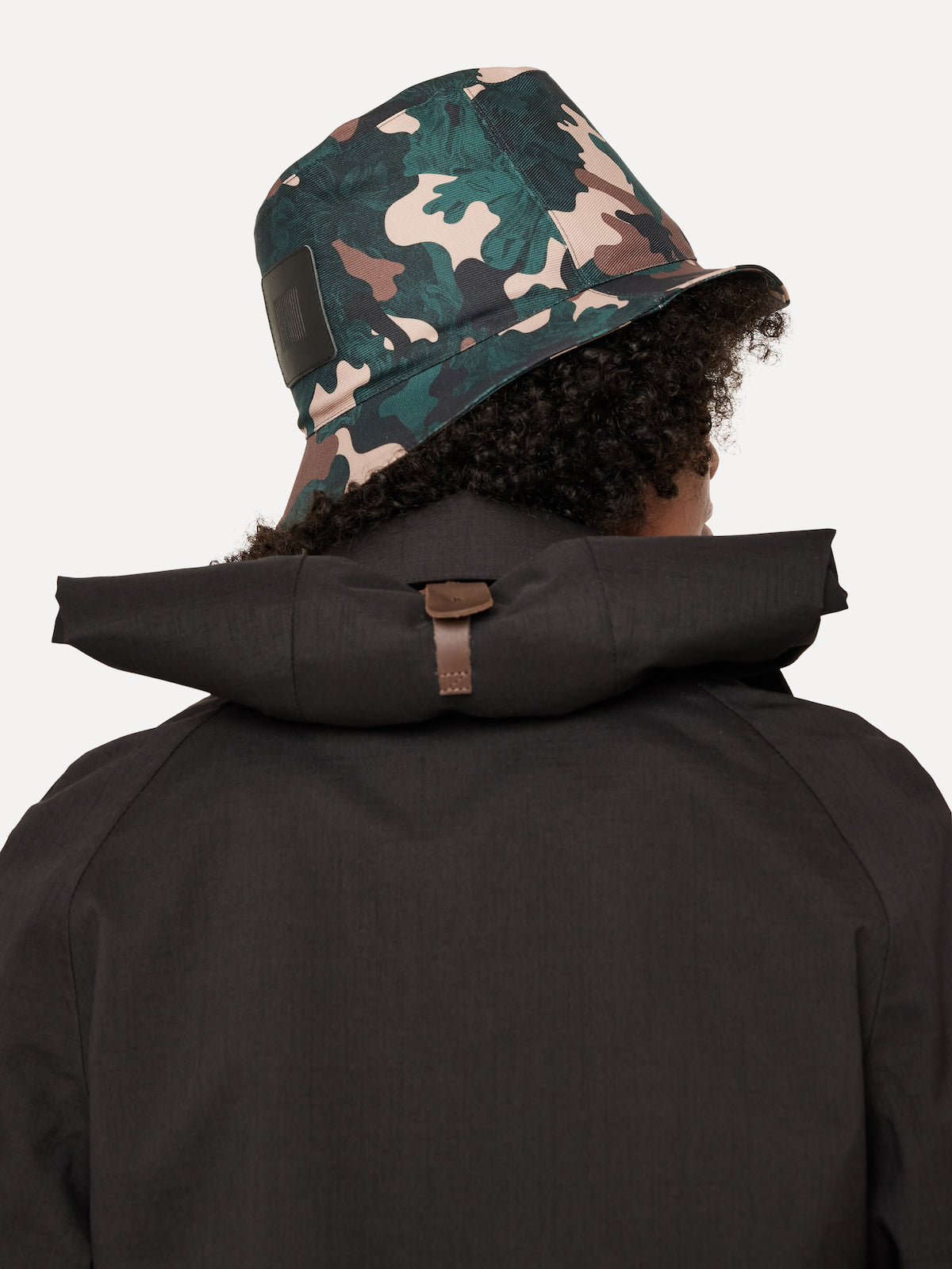 コートにも使用されるリサイクルポリエステルで作られたバケットハット。