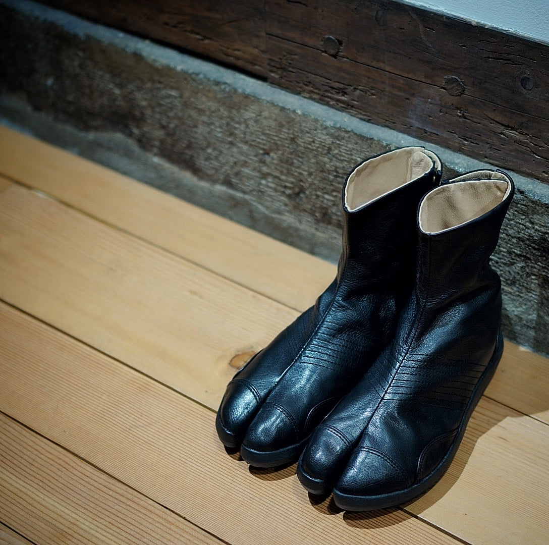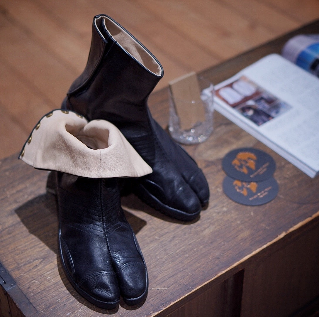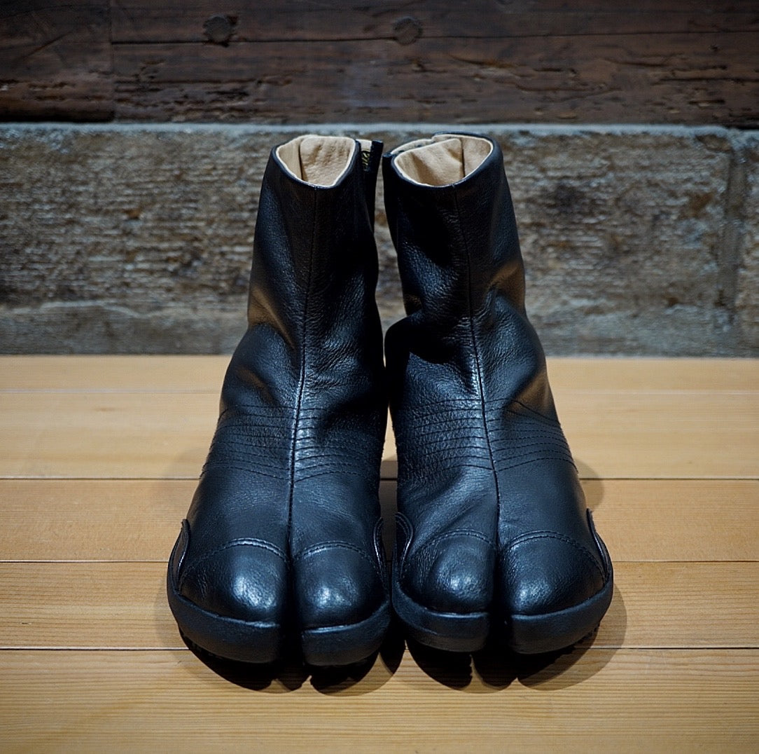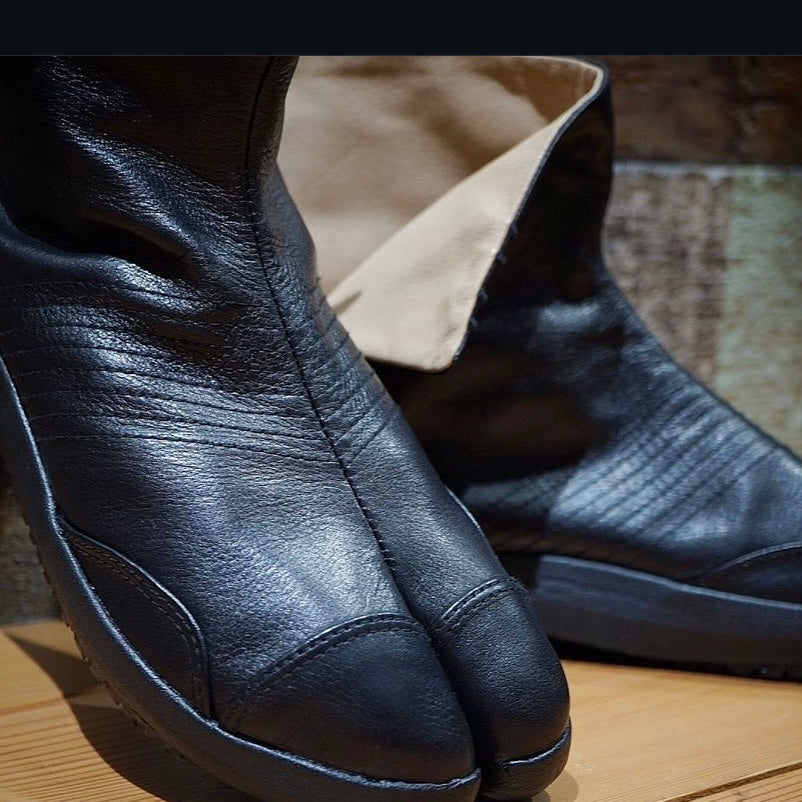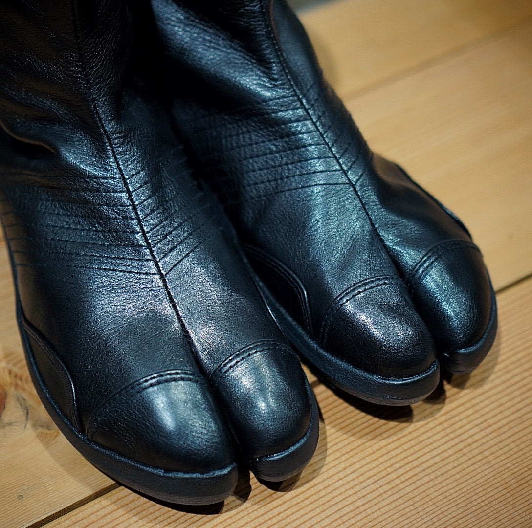 オリジナルの地下足袋のデザインと製法の伝統を損なわぬことを大切にしながら、ダイナミックにレザーを使用した"T/MICHAEL"だけの特別な1足。