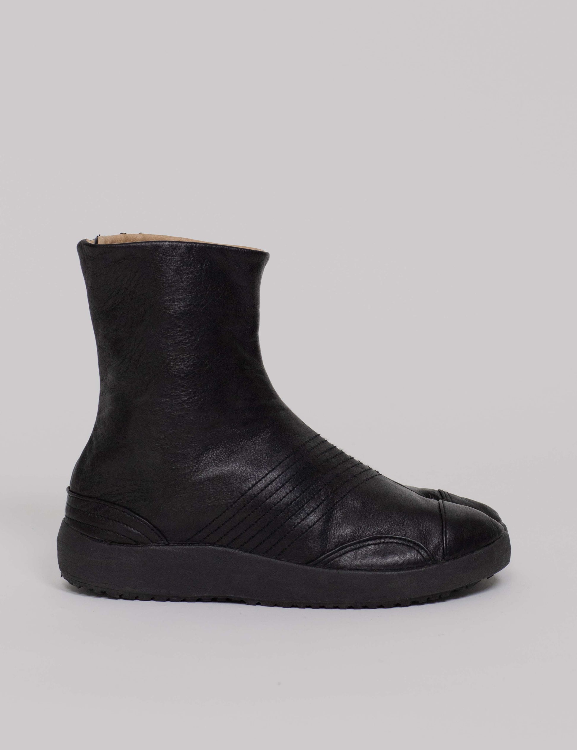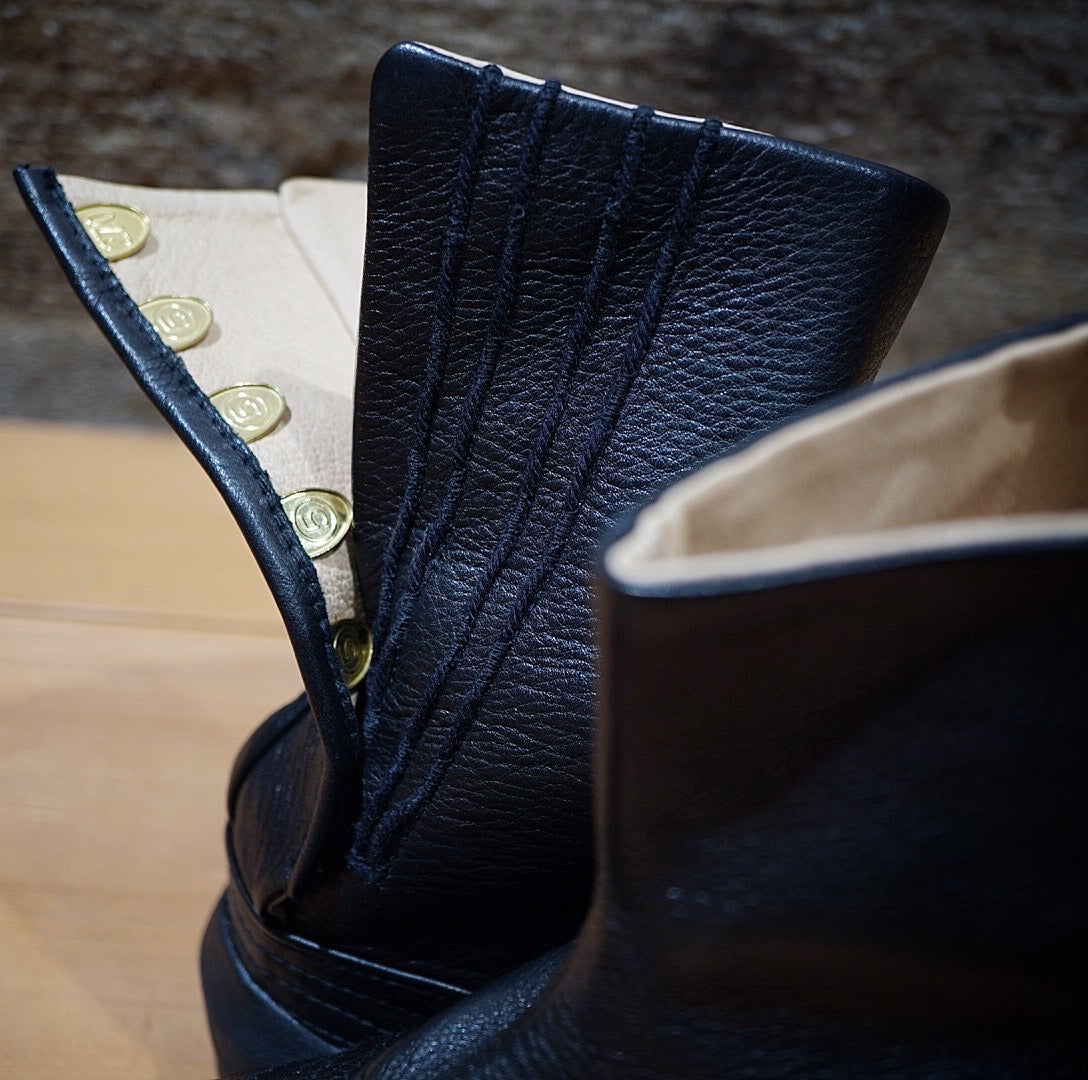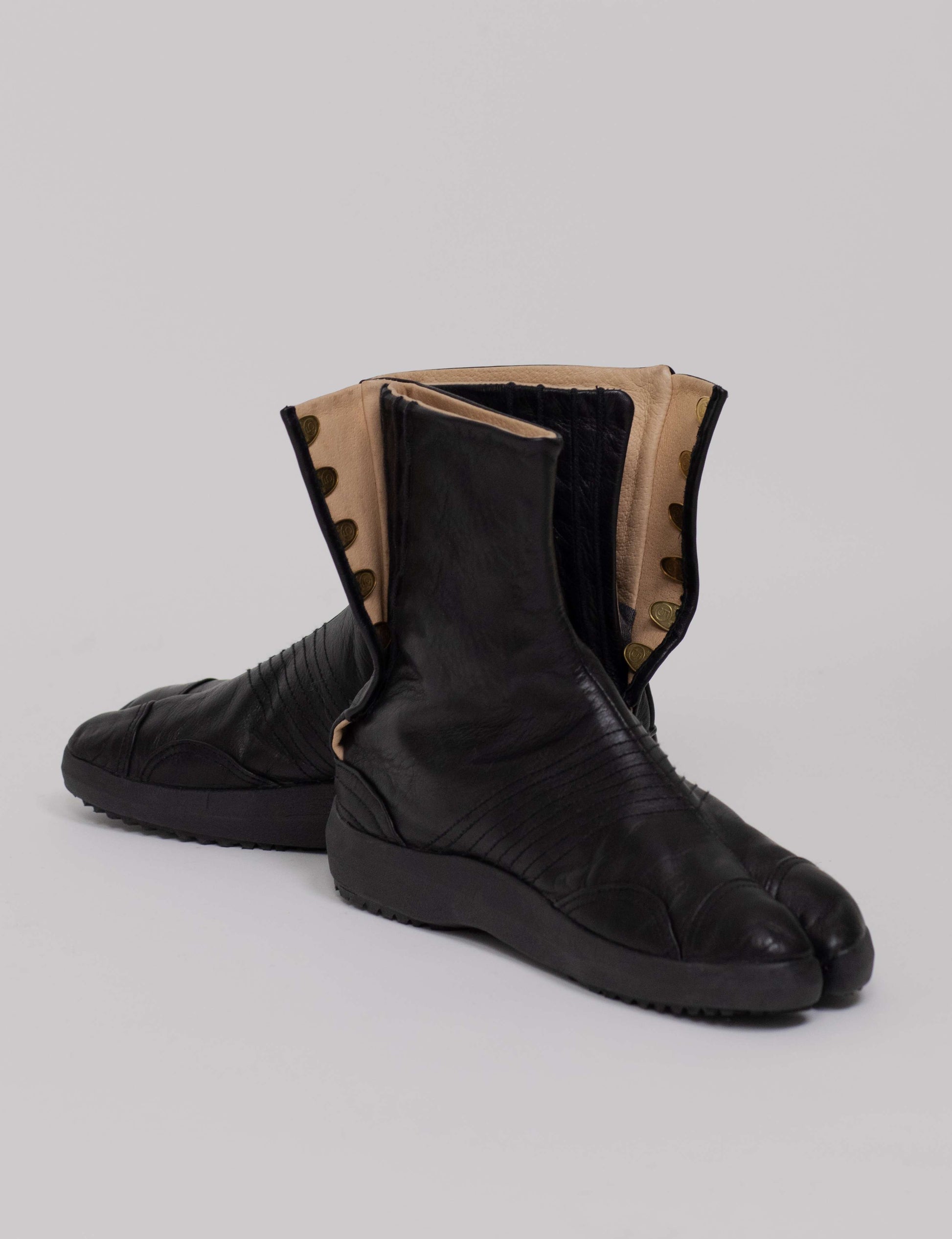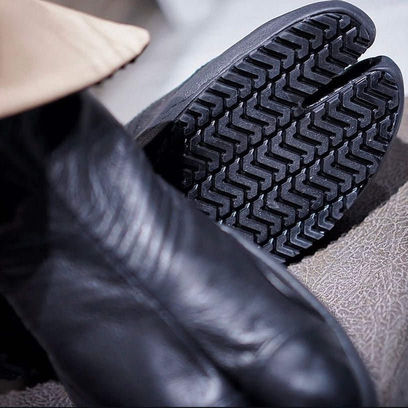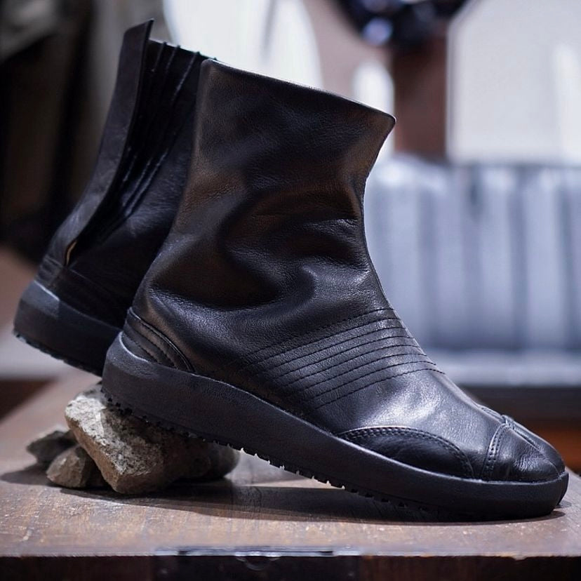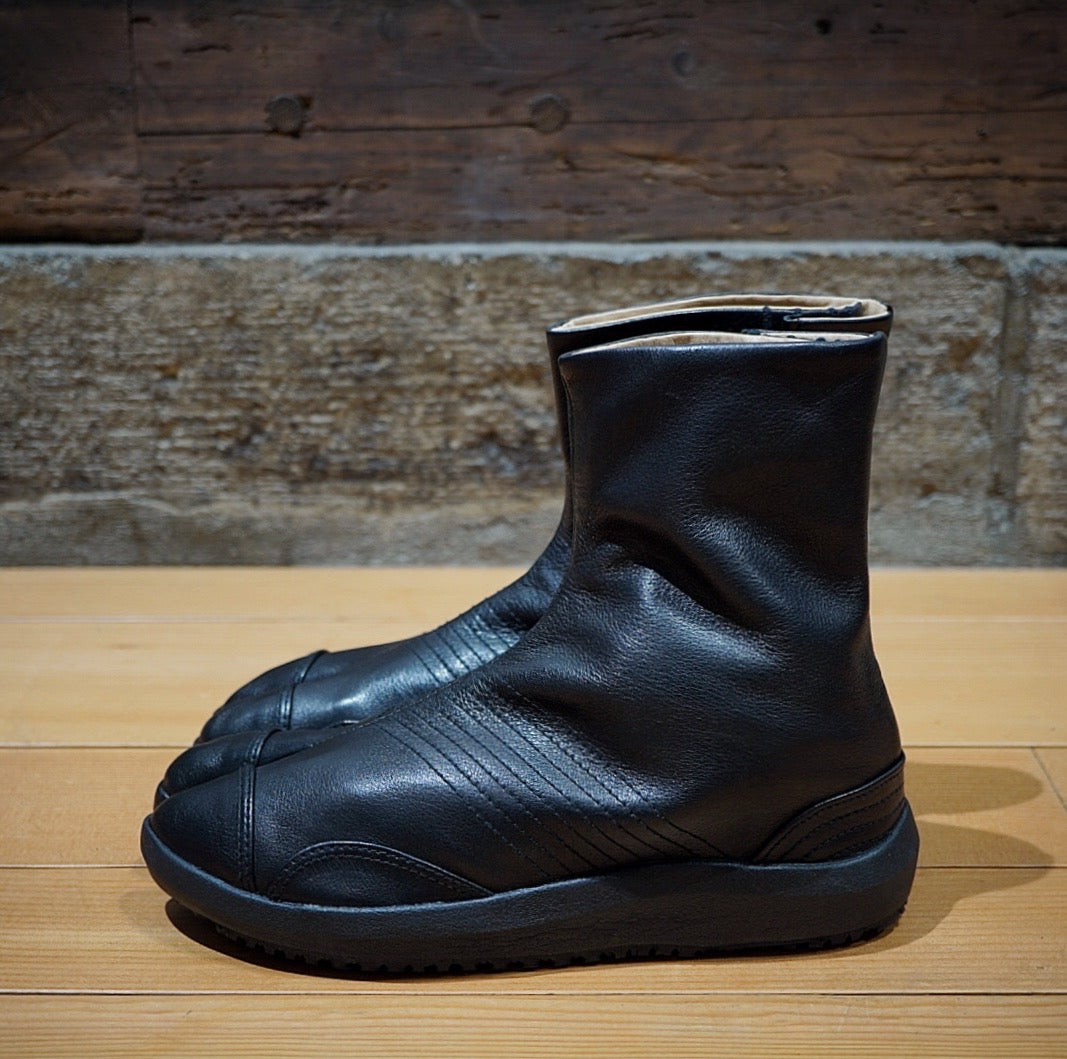 オリジナルの地下足袋のデザインと製法の伝統を損なわぬことを大切にしながら、ダイナミックにレザーを使用した"T/MICHAEL"だけの特別な1足。