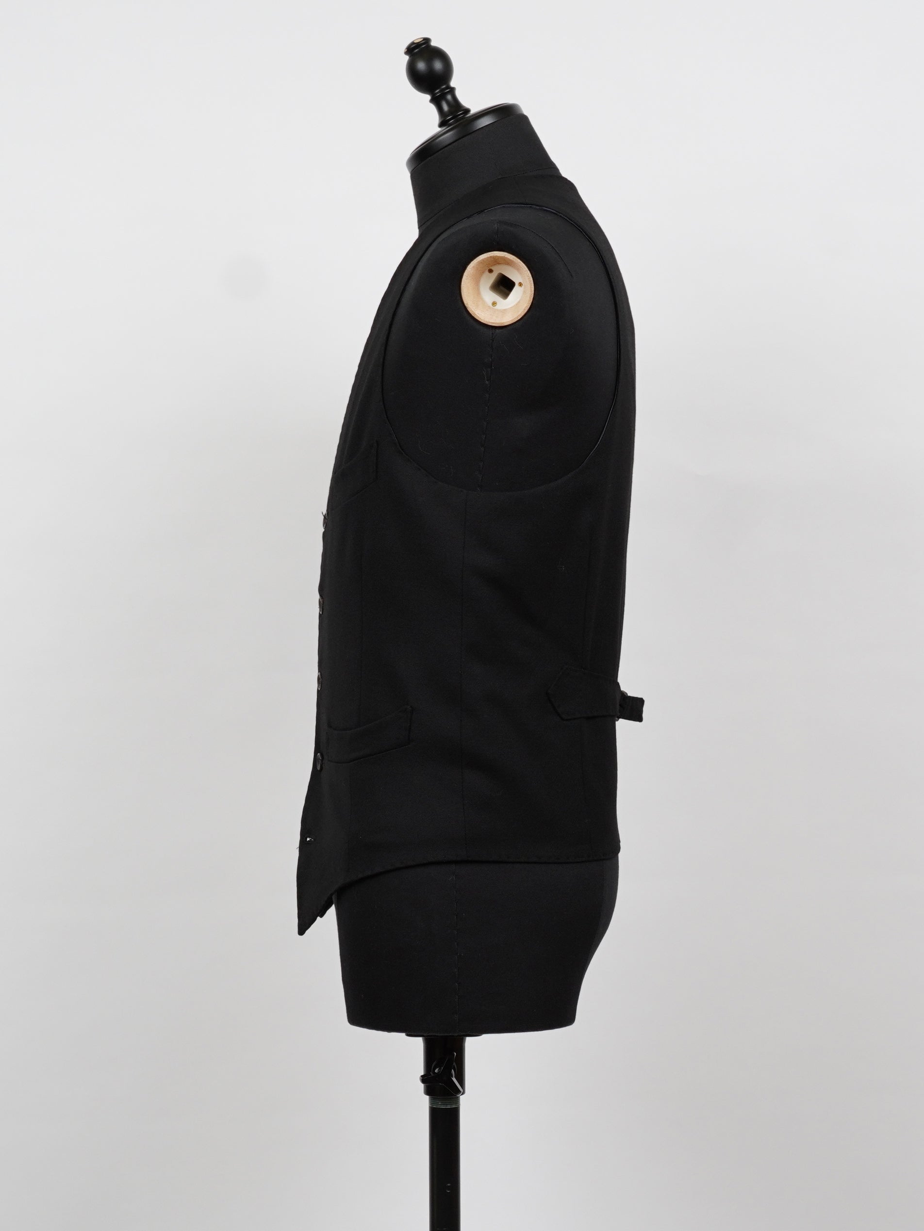 体のカーブに沿うような、立体的なシルエットが特徴のフロント5ボタンベスト。