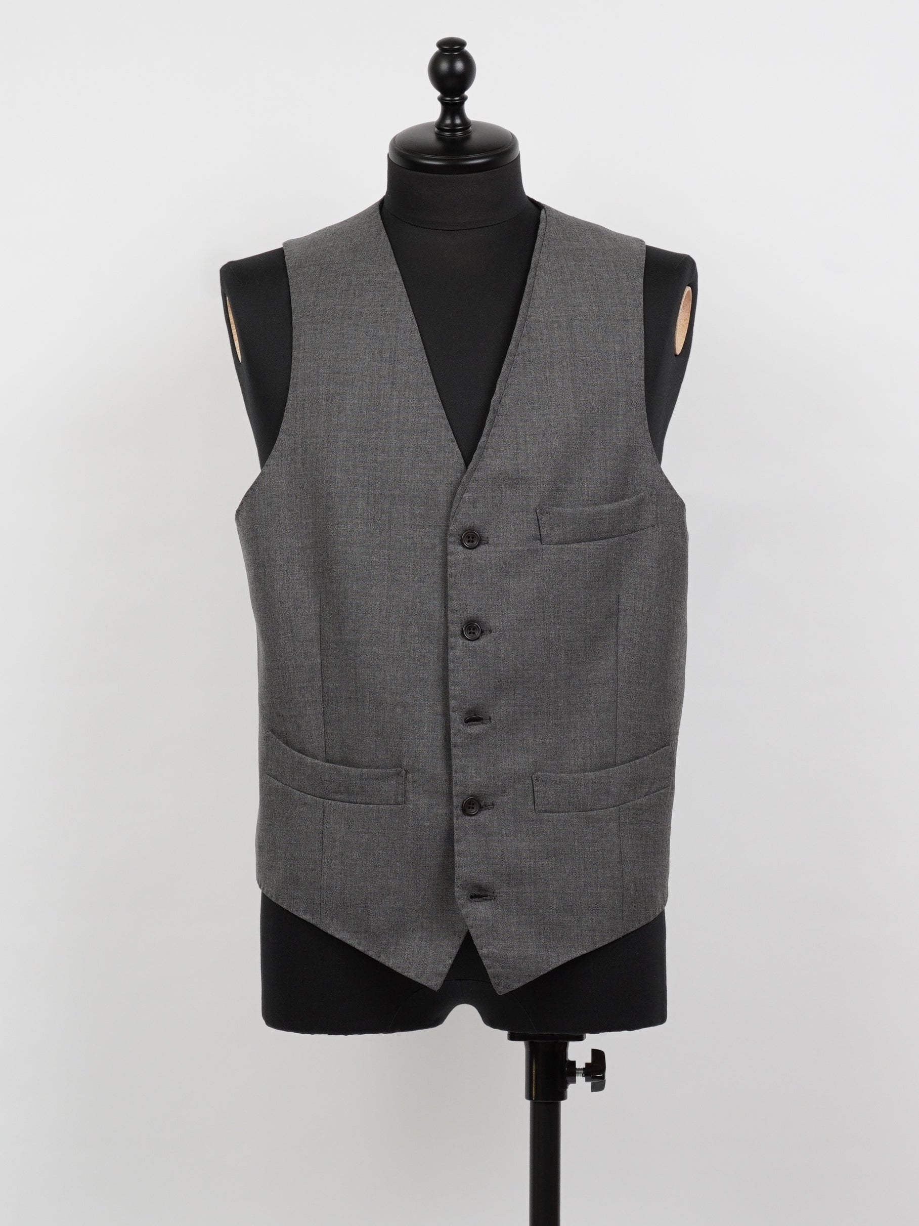 構築的な肩の作り、細目にシェイプされたウエストと、立体的なボディラインは、サヴィルロウで培ったメンズテーラーの真骨頂とも呼べるモデルです。